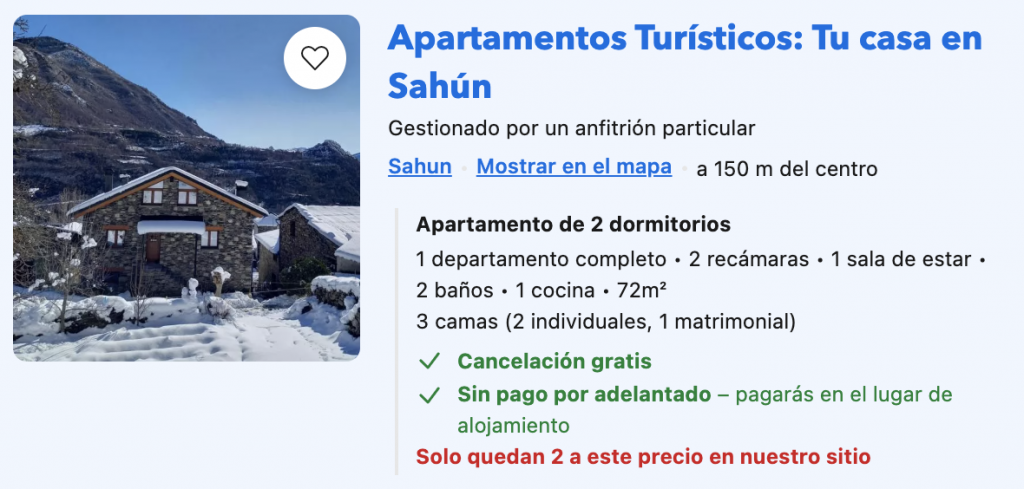 • Si reservas vía email (info@tucasaensahun.com), contáctanos y te informaremos de las tarifas de los apartamentos en las fechas que desees reservar.